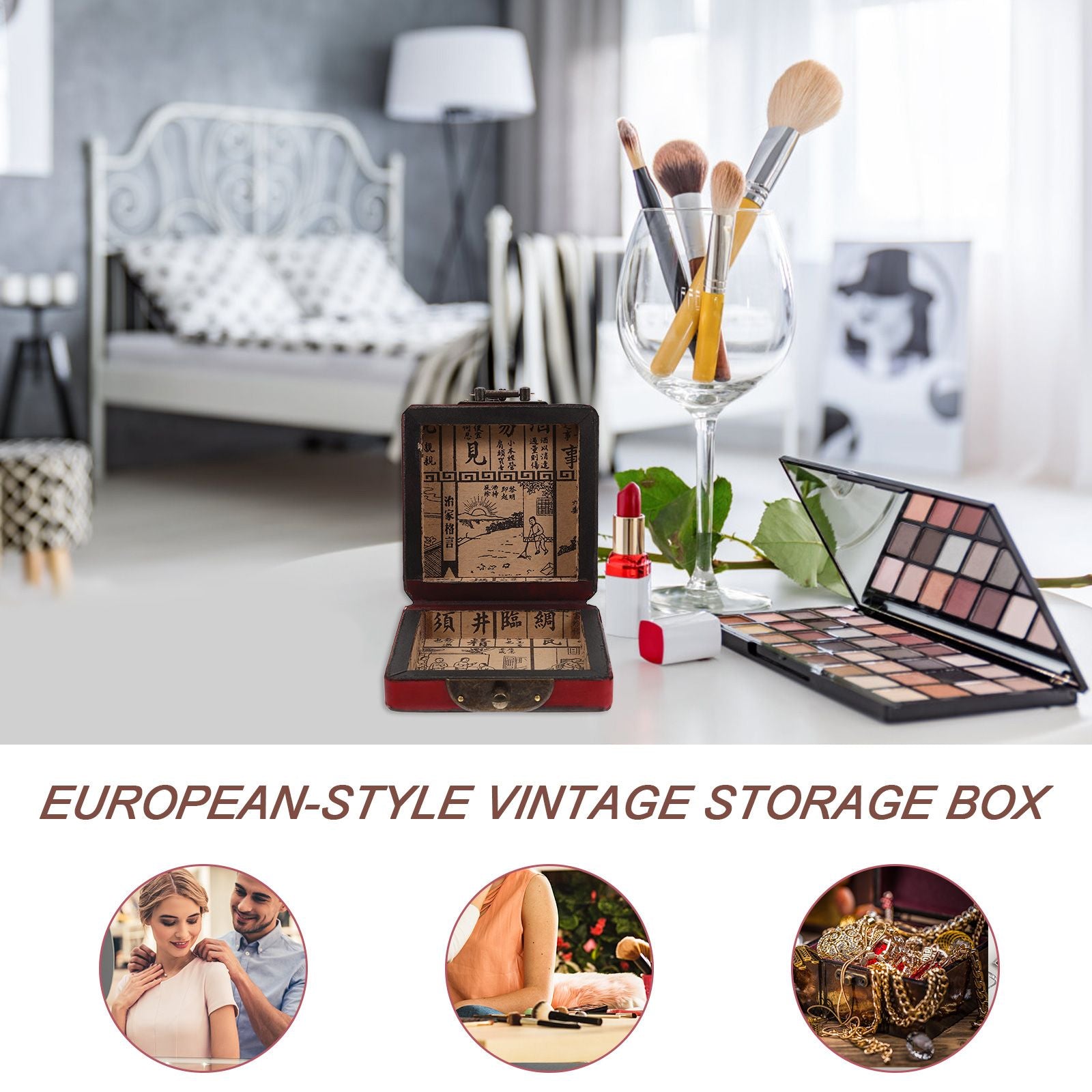 - Modelo: Vintage Wooden Trinket Box Jewelry Organizer