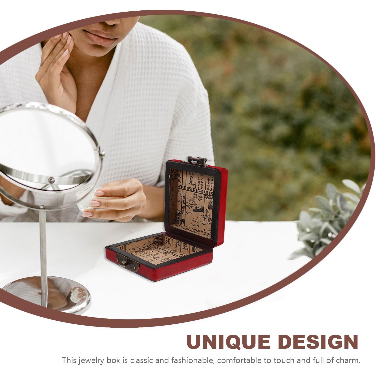 Esta sofisticada caixa de joias combina o estilo clássico oriental com funcionalidade moderna. Feita em madeira resistente e com detalhes metálicos, é perfeita para quem valoriza organização com um toque decorativo.