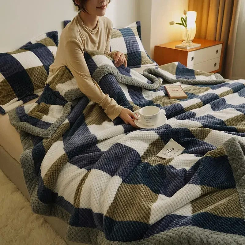 Cobertor de Lã Coral Xadrez – Alta Qualidade e Conforto