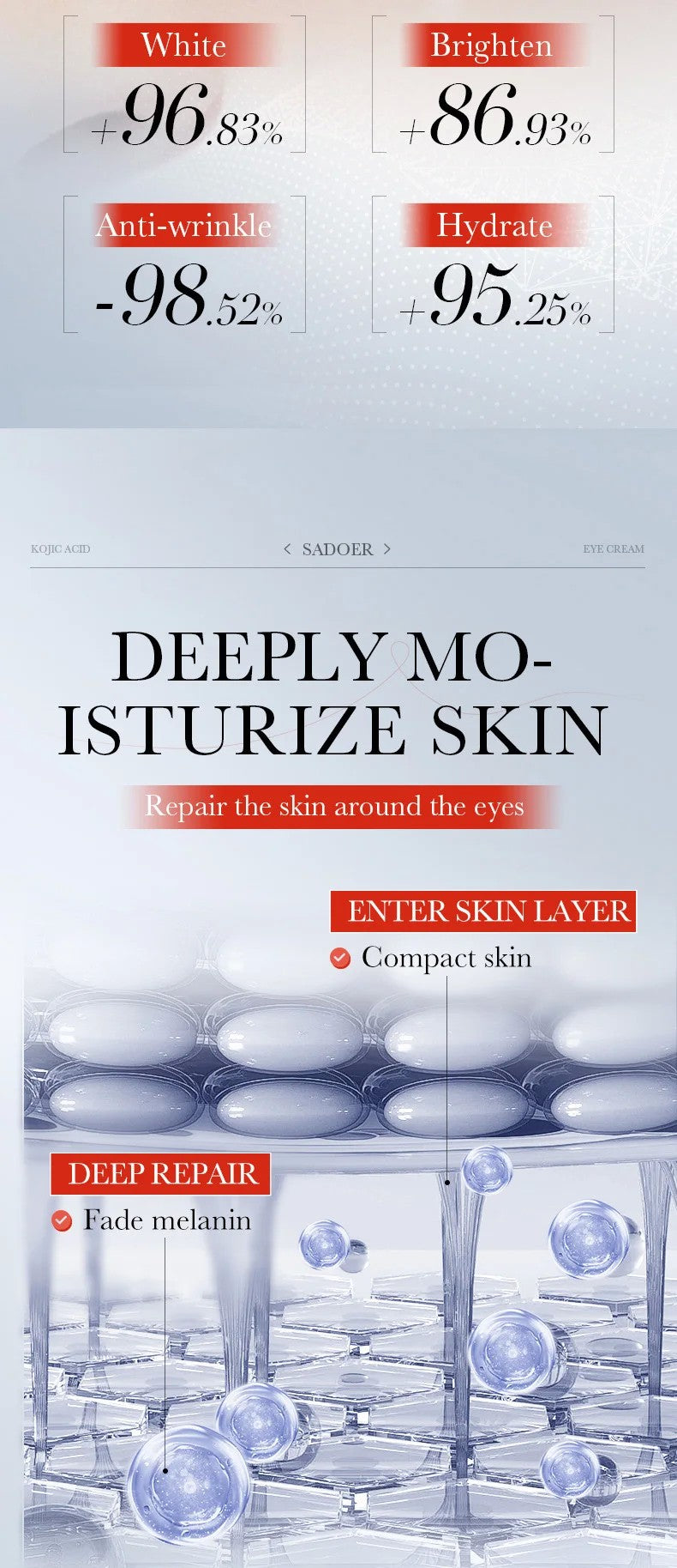 Se seus olhos merecem mais brilho e menos cansaço, esse creme da SAKSRAAR é o seu novo aliado. Com fórmula potente de ácido kójico e retinol, ele ajuda a reduzir olheiras, bolsas e inchaço, enquanto hidrata e firma a pele delicada ao redor dos olhos.